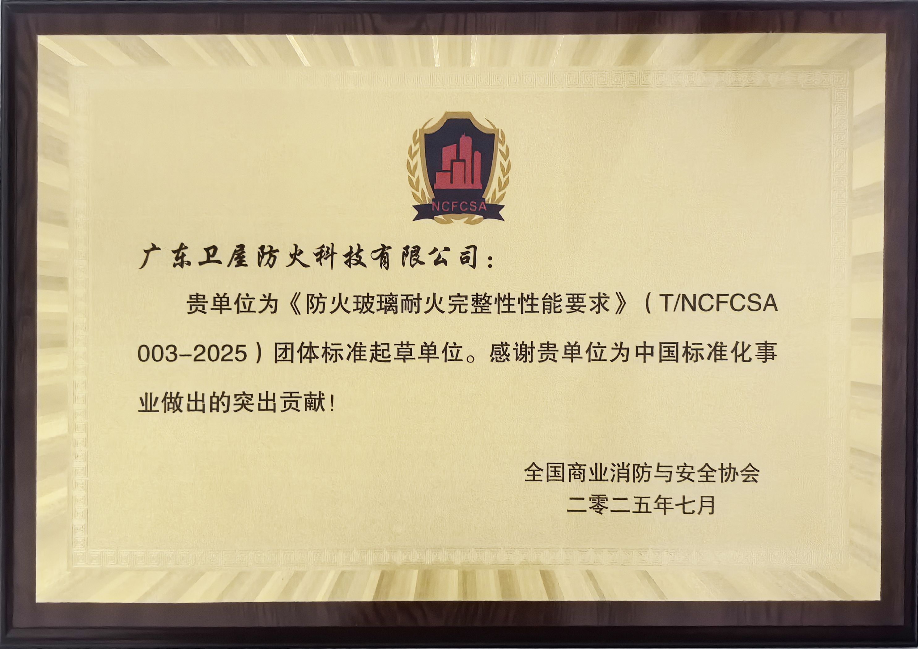 标准引领,共筑安全防线!卫屋防火科技参编《防火玻璃耐火完整性性能要求》标准正式发布!